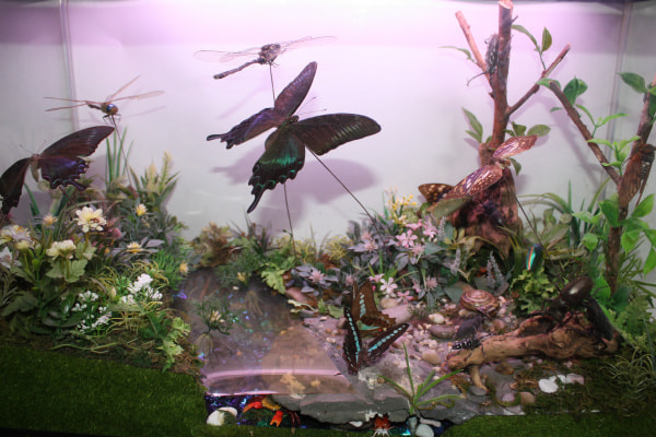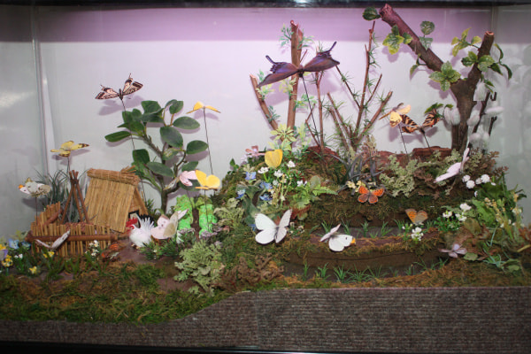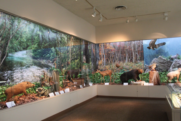 野生動物のハクセイ等を配置して日本の里山を再現するものです。