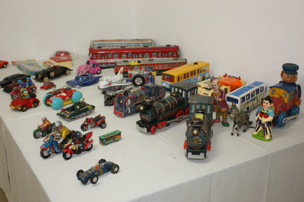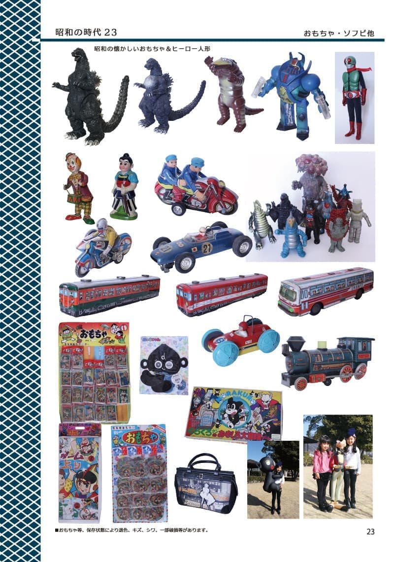 - ブリキ、ソフビ人形、紙玩具。