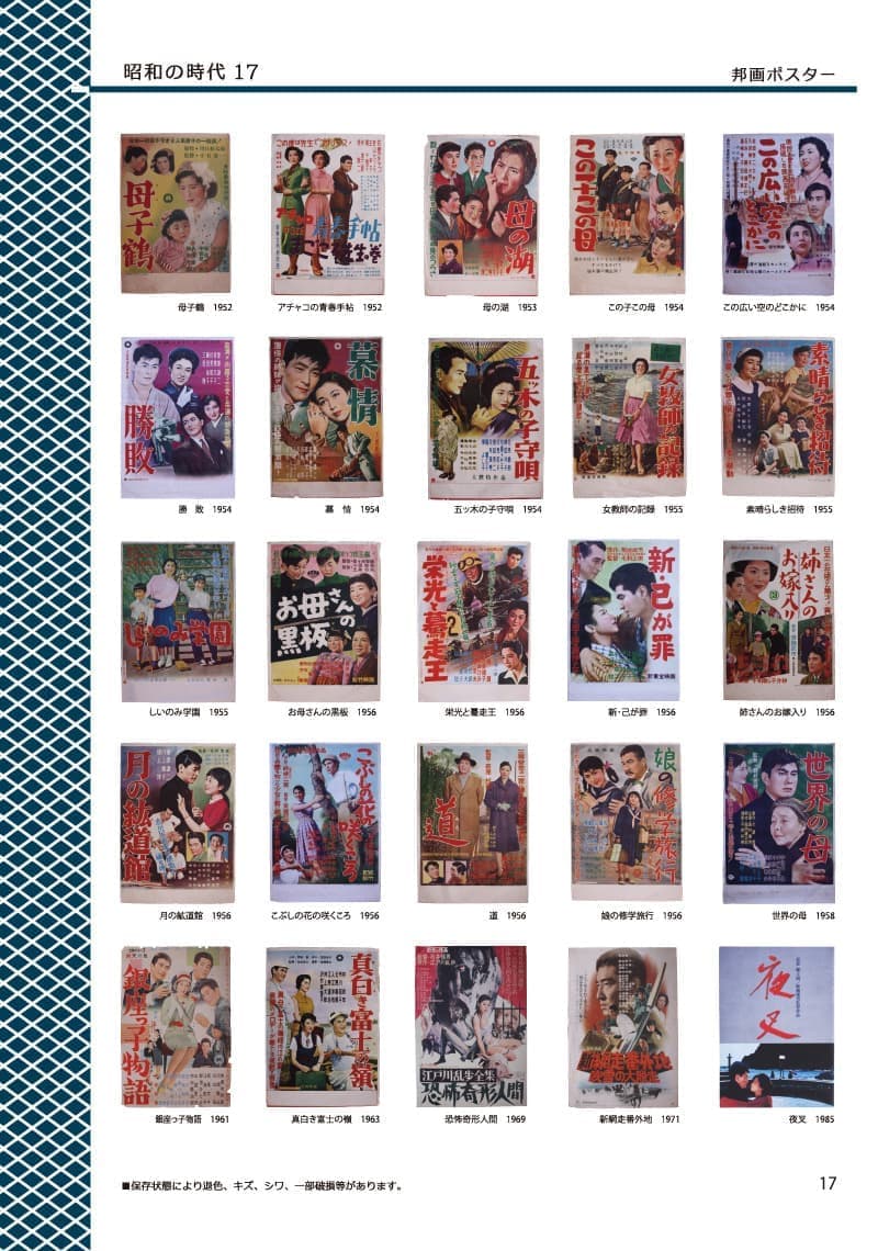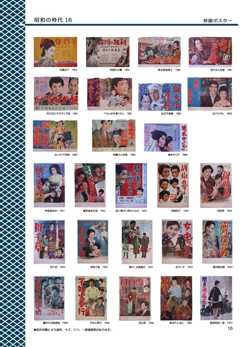 - 昭和30年前後の時代に活躍した名優たちのポスター。