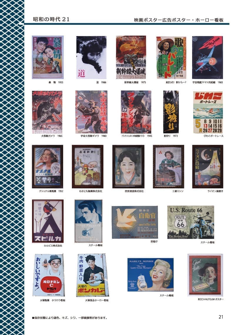 | 【オプション】 | ◆ビートルズポスター展示、昭和の時代ポスターの同時展示も承ります。 ※上記の各種展示品は、全て自社所有管理しています。 |